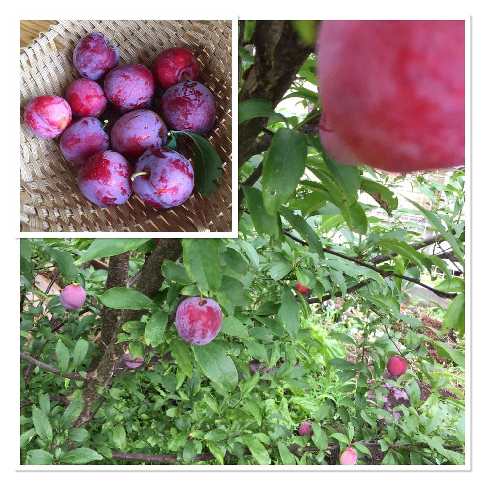去年200個以上とれたプラム。今年は50個程度。熟してそうなものから収穫。