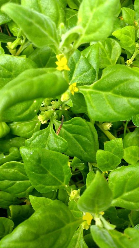 黄色の可愛い花を付けた、これは、なんじゃ?と、調べてみたら、ツルナと出て、食べられるとか。