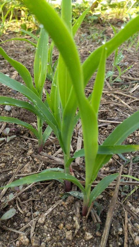 少し前、畑の何も植えていなかった場所にえらく均一に草が生え、面白いなあと思って見ていました。でも数日観察し、この均一さは不自然🤨と感じ..ふと、そういえば、主人と子どもたちでポップコーンを植えたと話していたような...