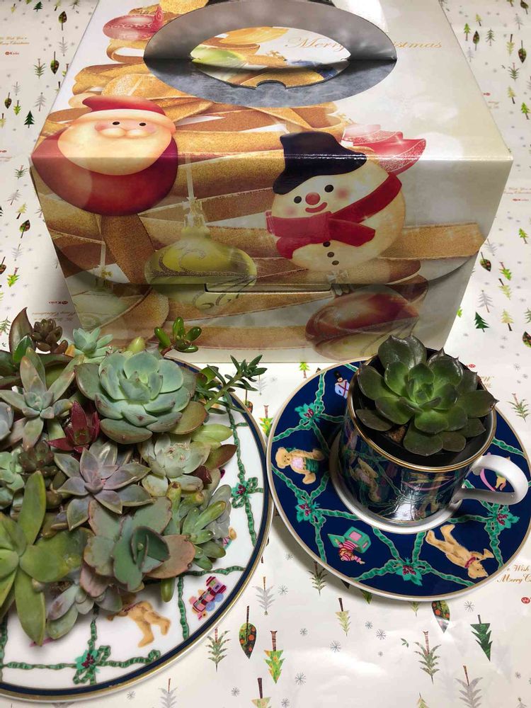クリスマスケーキ🎂の箱がかわいかったので 多肉ケーキ🍰と多肉茶