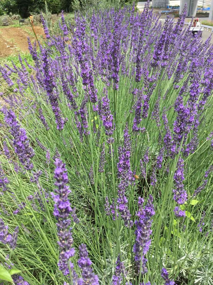 ラベンダー ちょっと気難しいので去年枯れた株もありましたが丘の上の畑で大株になりました