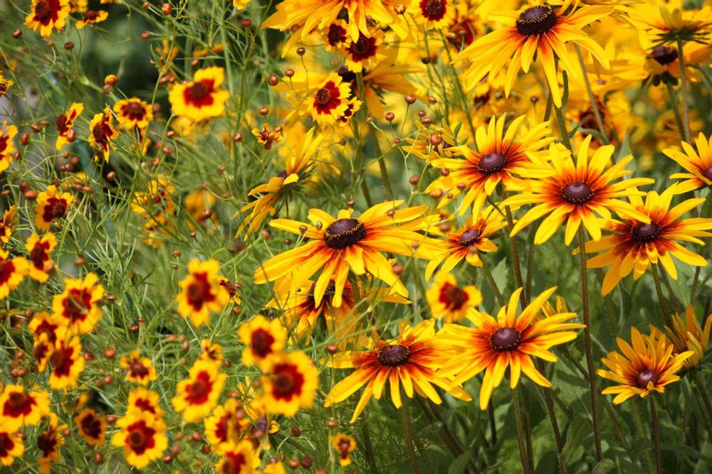 ハルシャギクとルドベキアが花壇で隣り合わせ🌼