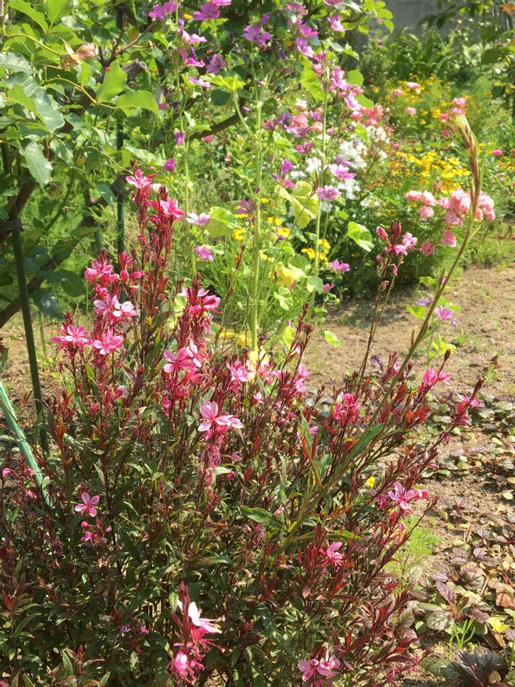 矮性のガウラ、リリポッフピンクが、次々と花を咲かせています。春の終わりから、秋の終わりぐらいまで長く楽しめます。