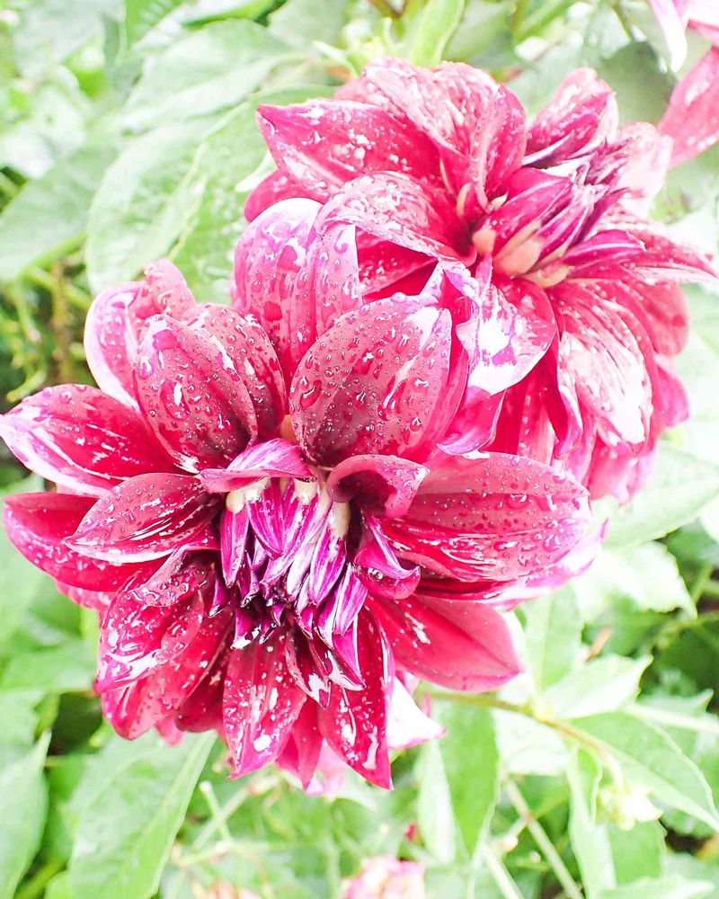 ダリアの花は雨を弾いているようです😊