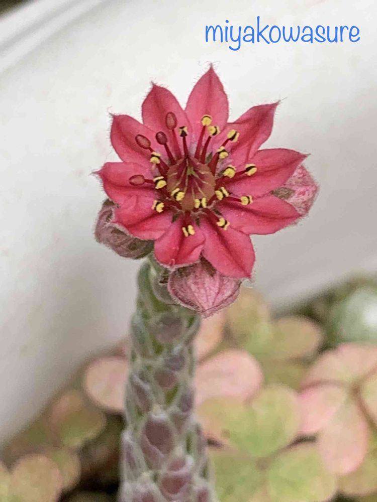 小さなセンペルビウムが茎を伸ばして咲きました♪