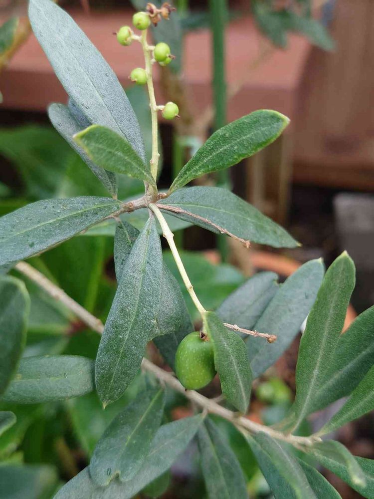 2本あるけど一本は調子崩して💮花咲かず‼️🤷だけどちょこっとだけ実🫒をつけた👍自家受粉だからあまり大きくならないかも🤔でもいいや貴重な🫒オリーブの実で少ないじいちゃんの毛に付けてヘアーメンテだ😎