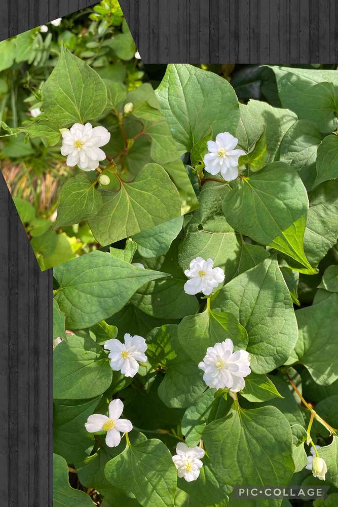 八重咲きのドクダミ〜よ〜く見てもドクダミとは思えないですね〜葉で納得😍