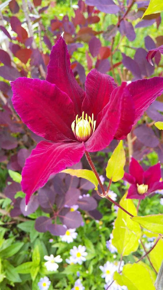 うちのクレマチス、ダイアナの後ろにも銅葉の花木が植わってた~🤣🤣
