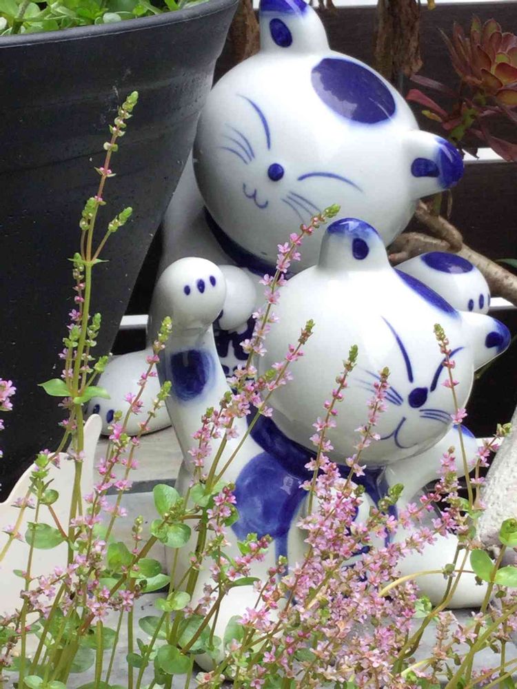 メダカ鉢の横にニャンニャン その前にお花🌸