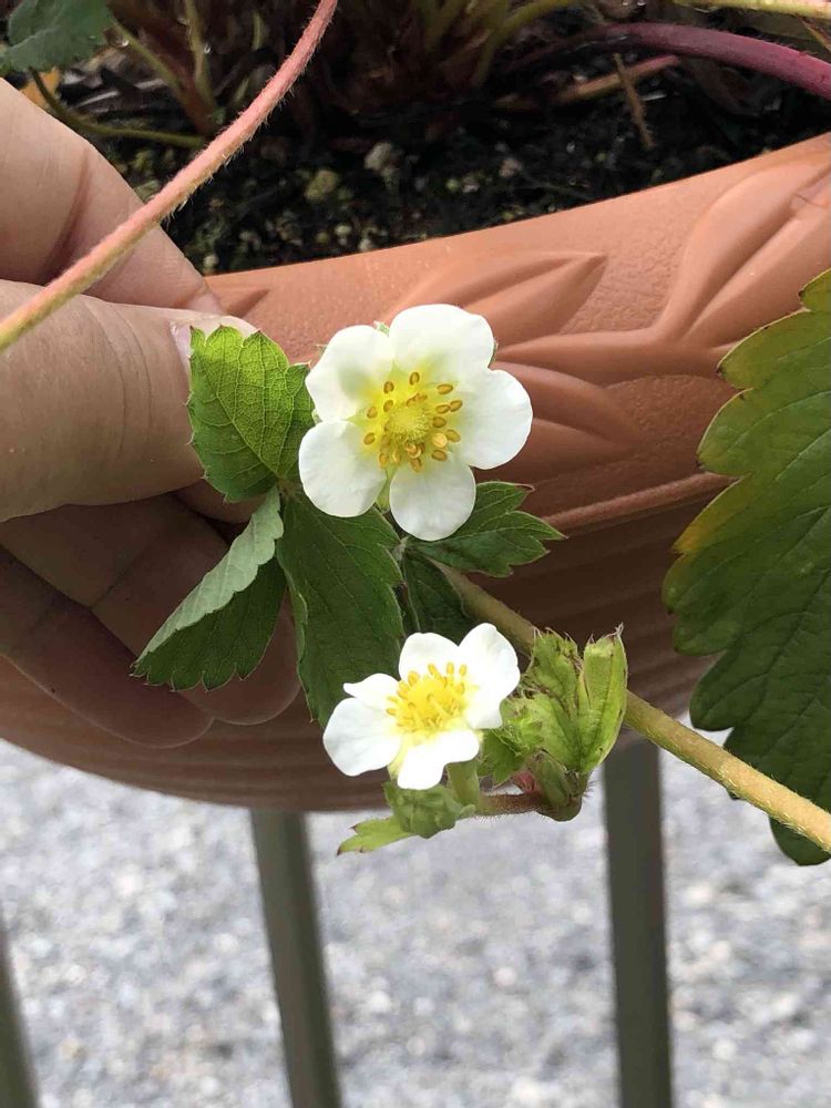 昨日見つけた👀いちごのランナーの先に付いた蕾が咲いてます😅