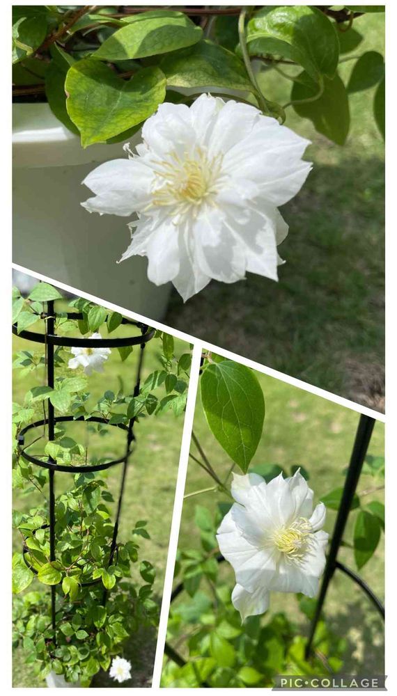 クレマチスのダッチェスオブエジンバラが咲きました🥰2輪しか咲いてないし思ったより小さいけど咲いてくれて嬉しい💓💓💓ダッチェスオブエジンバラって名前、ようやく覚えました😅