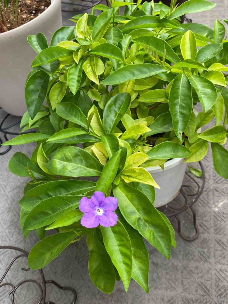 以前、ニオイバンマツリでしょうか? とアップしました。 不安な気持ちで葉を愛でていましたが、やっと花が咲いてくれました。反対側にも 蕾が一つ。