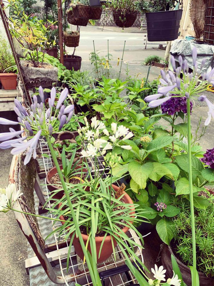 アガパンサスちゃん、紫は今年は2つしか咲かない様子で残念。。でも友達の園芸店の売れ残りでもらった白も仲間入りして可愛く咲きはじめた。