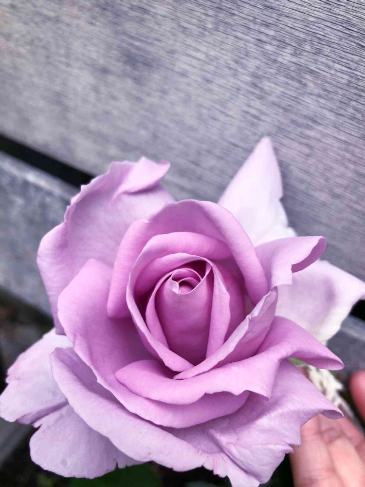 青バラのローズシナクティフが咲きました🌹一番花だけなぜか先がクタっと下を向いてしまうため、支えながらの撮影です。笑