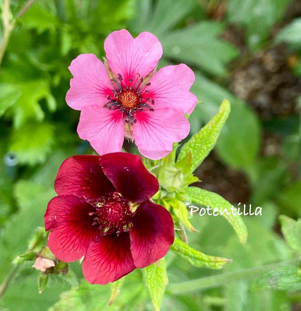 2色のポテンティラが仲良く寄り添って💕