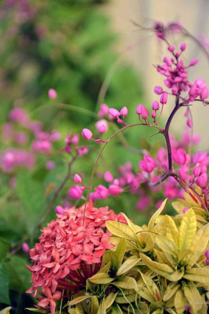 駆除対象外来種に指定されているチェーンオブラブ(和名 : アサヒカズラ)。駐車場のサンタンカを覆い始めたために根こそぎ駆除されたはずだったのに、また出て来ました。強いなあ。。ピンクでかわいくはあるんですけどね。。