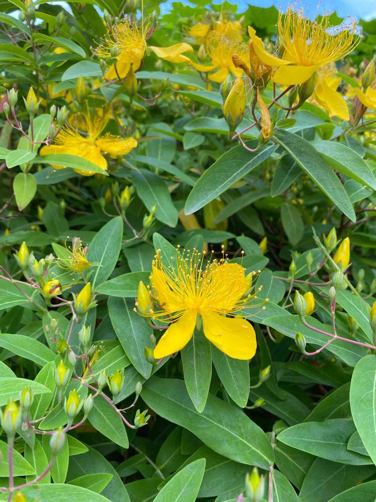 セイヨウキンシバイを撮ったときも調べていたら「ビヨウヤナギ」が出てきたんですが、つぼみがとんがっていないし、雄しべは真っ直ぐだし…。