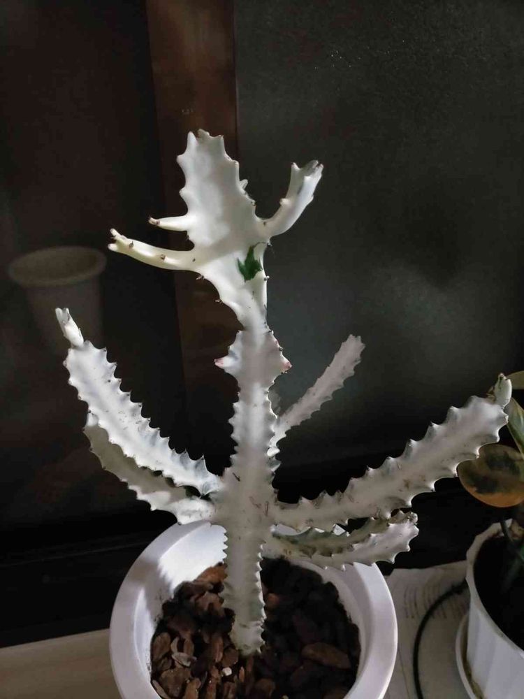ホワイトゴースト、先祖返りした部分は緑になってしまうと何かで読んだのですが、カットしたほうが良いのでしょうか?この子の後頭部、だんだん緑が広がってきてるんです。。。😅