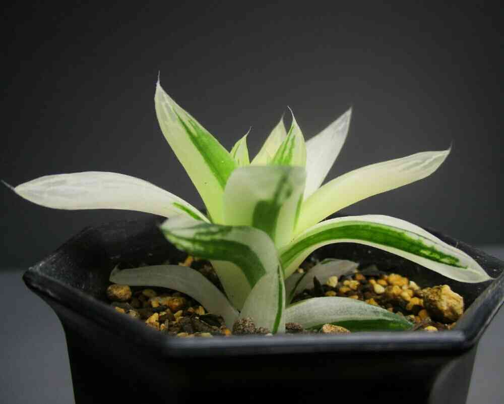 真っ白な葉に、グリーンの筆書きしたようなラインを入れた葉姿は、なんとも初々しい。