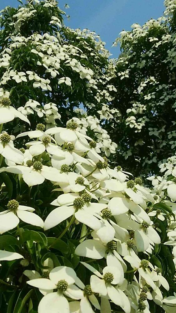 白い花、いや総苞(葉が変化したもの)が見事で樹を見上げ深呼吸しました🌱