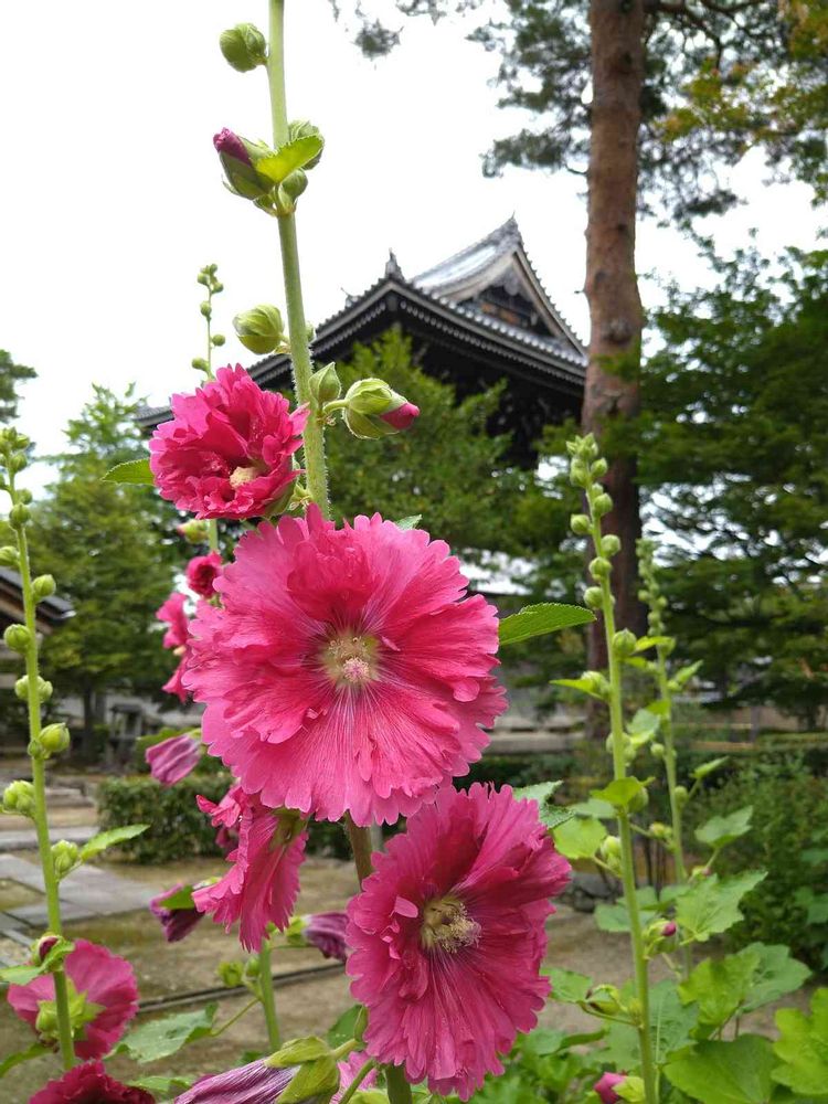 仕事帰りに立ち寄った相国寺に💗タチアオイ💗のお花が綺麗に咲いていました🥰💕