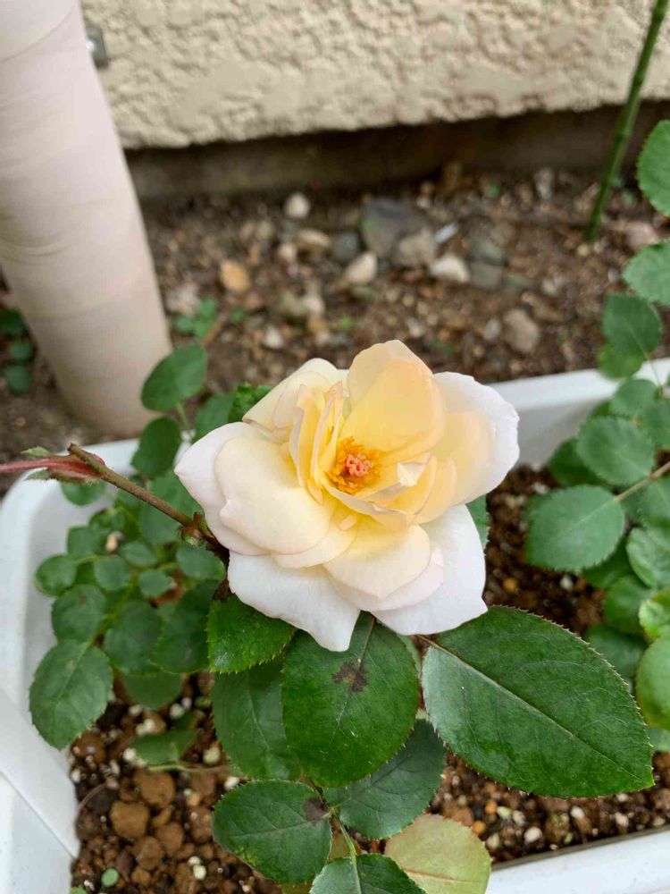 あまり大きくない苗なのに花が立派でビックリしました、すぐにカットして花瓶に。今は白く褪色してますね。フロリバンダ樹形なので花付き良さげかもしれないです😊