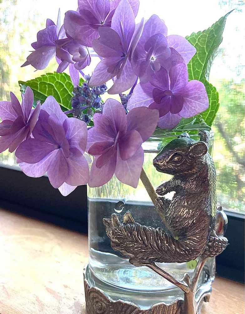 アジサイとても綺麗ですが先に花瓶が目に入ってしまいました。😆💕
