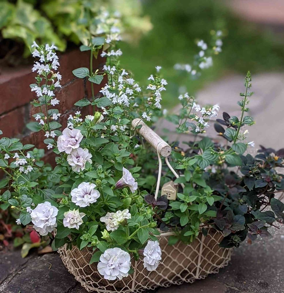 ワイヤーバスケットの寄せ植え、とっても素敵ですねー🤗💕