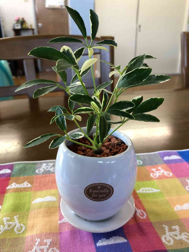 先日HCから連れて来ました😊なんて言う名前かと思い、貼ってあるシールを見たら、観葉セット…としか書いてありませんでした😅教えて頂きカポックだと分かりました。今朝起きがけに、お店でカラーリーフのグラス類が、カラフルに並んでいて😆✨⤴️⤴️舞い上がっているという夢を見ました。ホントに最近寝ても覚めてもそんなことばかり考えてしまっているなと自覚した朝でした😅