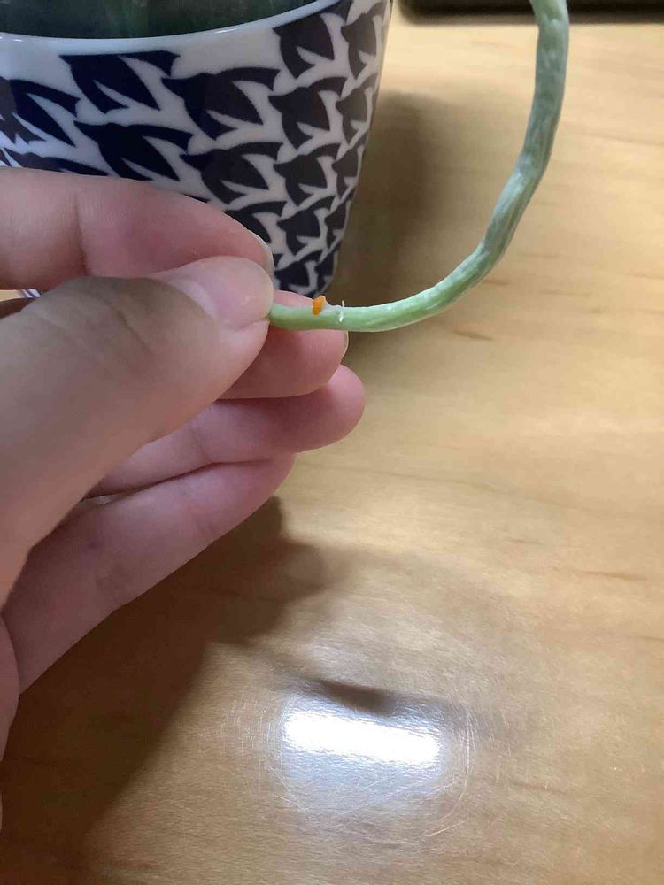 前回の投稿に続き、蘭の根に生えてる謎の黄色い物体です、、