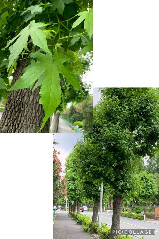 紅葉の葉っぱに似てるからかな?!モミジバフウって名前…初めて聞くけど 交通量の激しい道路脇で頑張ってます❗️