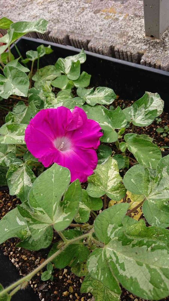 これは、平地チャレンジとは違う場所に植えたものなのですよ。この子はフェンスに絡ませて上に育てる予定なんですが、上に伸びる前に咲いていまして😲