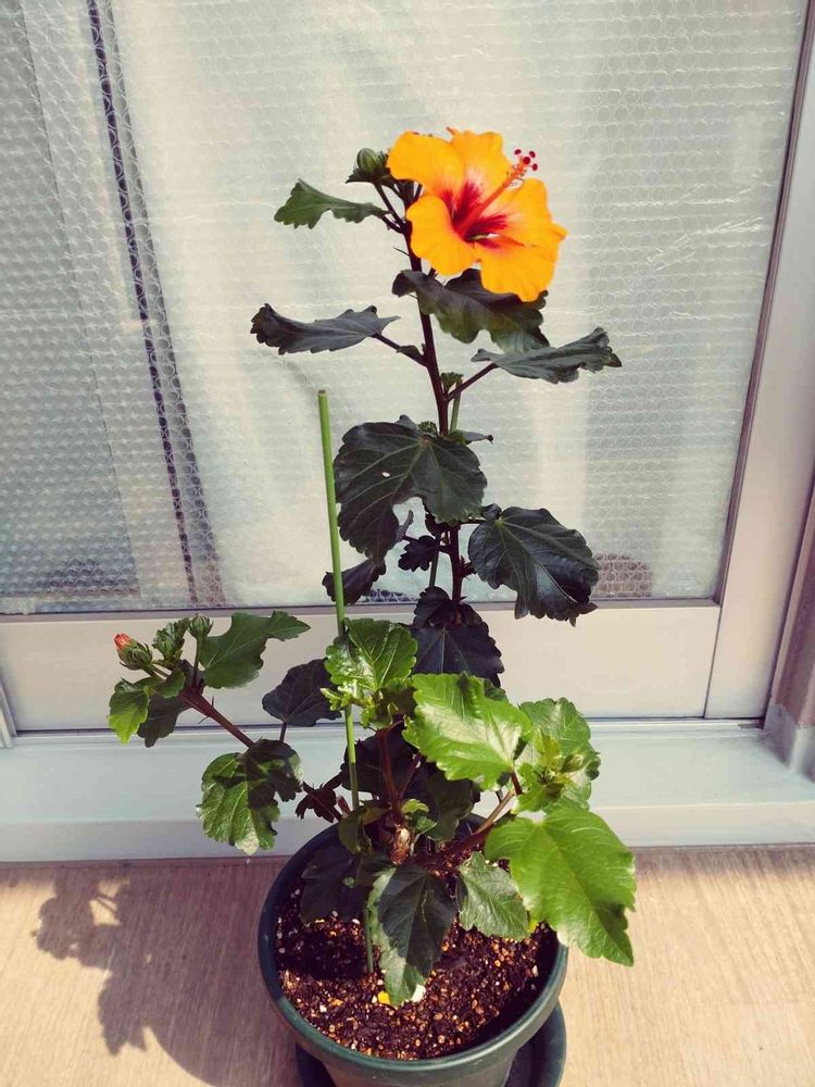 バルコニー/ベランダ,ハイビスカス,オレンジの花の投稿画像