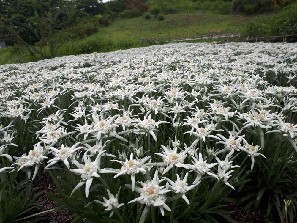 このエーデルワイスは、庭園の20周年を記念して新たな名物にと約1万株を昨年植え付けして初めての開花期を迎えたとの事です。