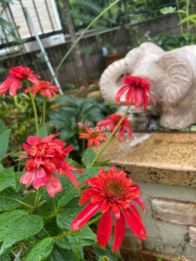 赤いエキナセア、フダ飛んでったー