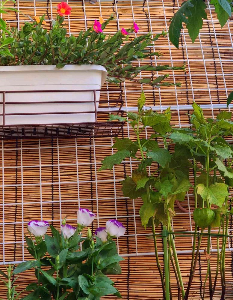 鬼灯は何か弱々しいね😶去年の植替えから新芽が出て育ったこ❢❢トルコ桔梗は、つぎつぎ花が咲く❣