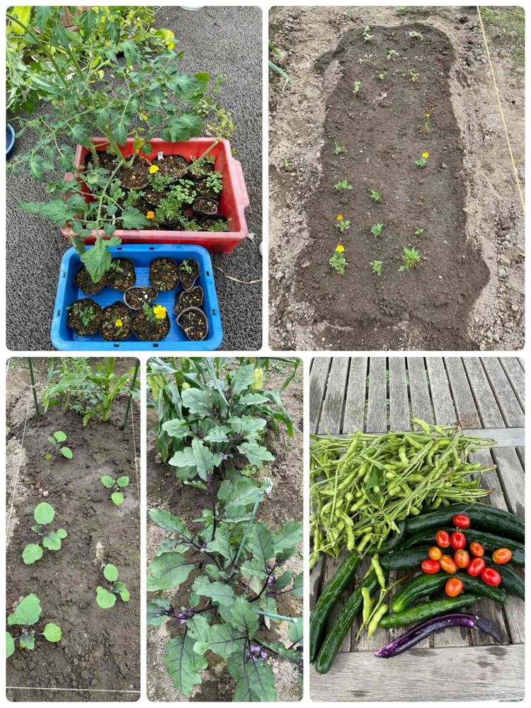 枝豆、トマト、キュウリ、ナスを収穫して来ました。