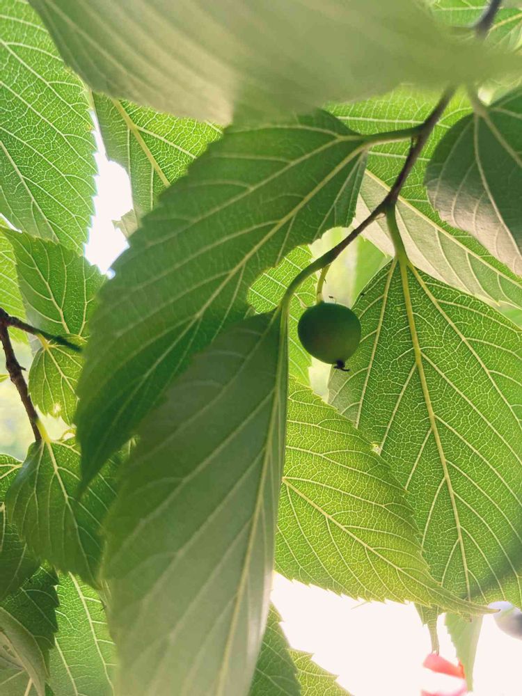 ムクの木の実。10月になると黒紫色になって食べれるそうです😊 10月にまた来ようっと♫ 面白いのは葉っぱが天然のサンドペーパー(仕上げ用)😊