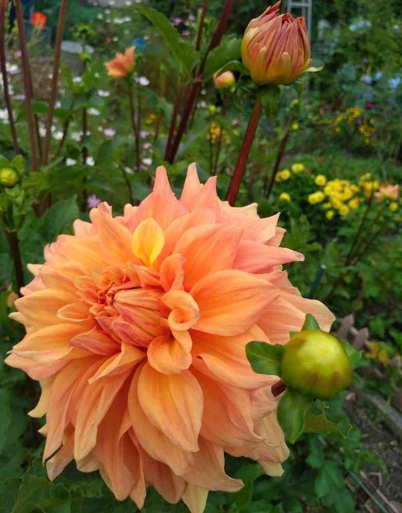オレンジのダリアさん 綺麗に咲いて、つぼみもいっぱいだね🤗