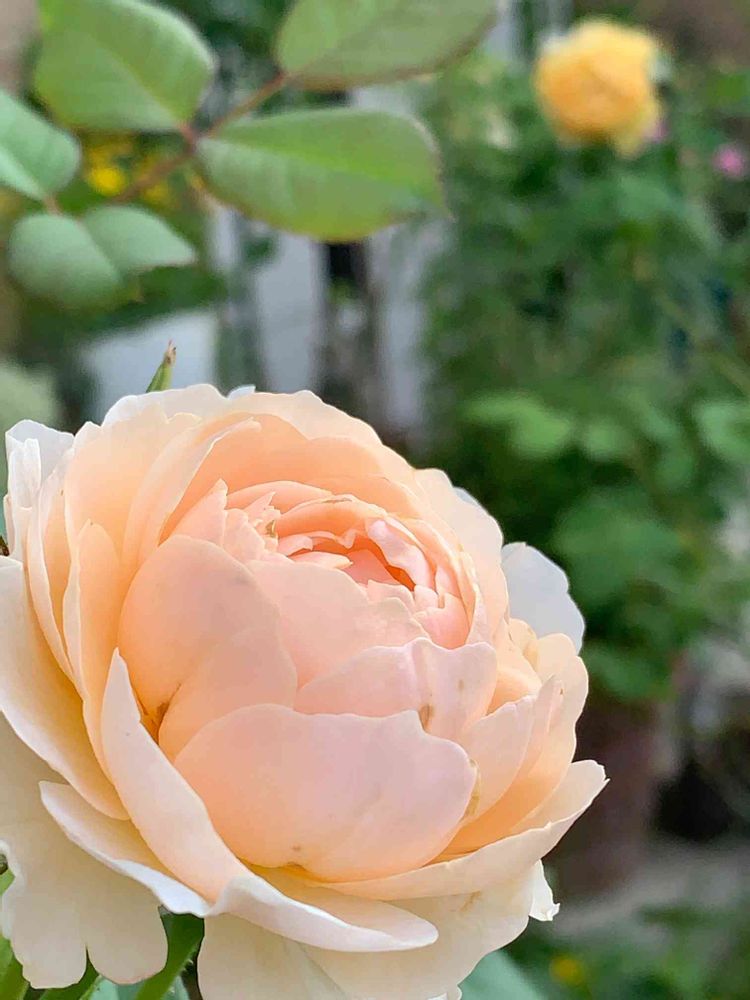 濃厚な純アプリコットの花弁が多くつまったディープカップ咲き。強香で丈夫なシュラブローズです。