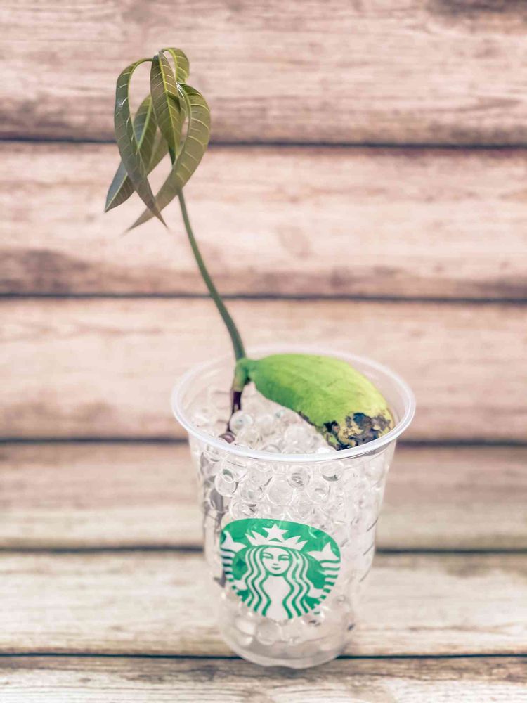 今まで食べ終わったパイナップルやアボカドをお世話して育てる方は見たことありましたが、マンゴーは初めて!👀