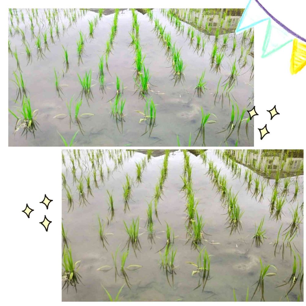 田植えからおよそ2週間。根ははったようです。今年はタニシが少なくて喰われてない🙌