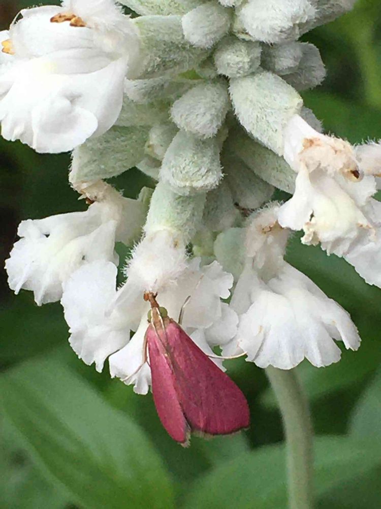 キレイな赤紫の羽がサルビアの白色の中目立ってます💗