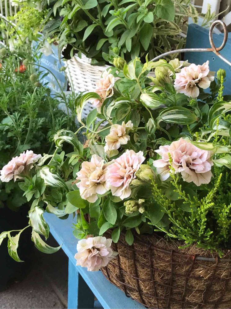 ブリキの鉢からハンギングに変えて、水はけを良くしてみました。ペチュニアが盛り返したようで嬉しい〜。