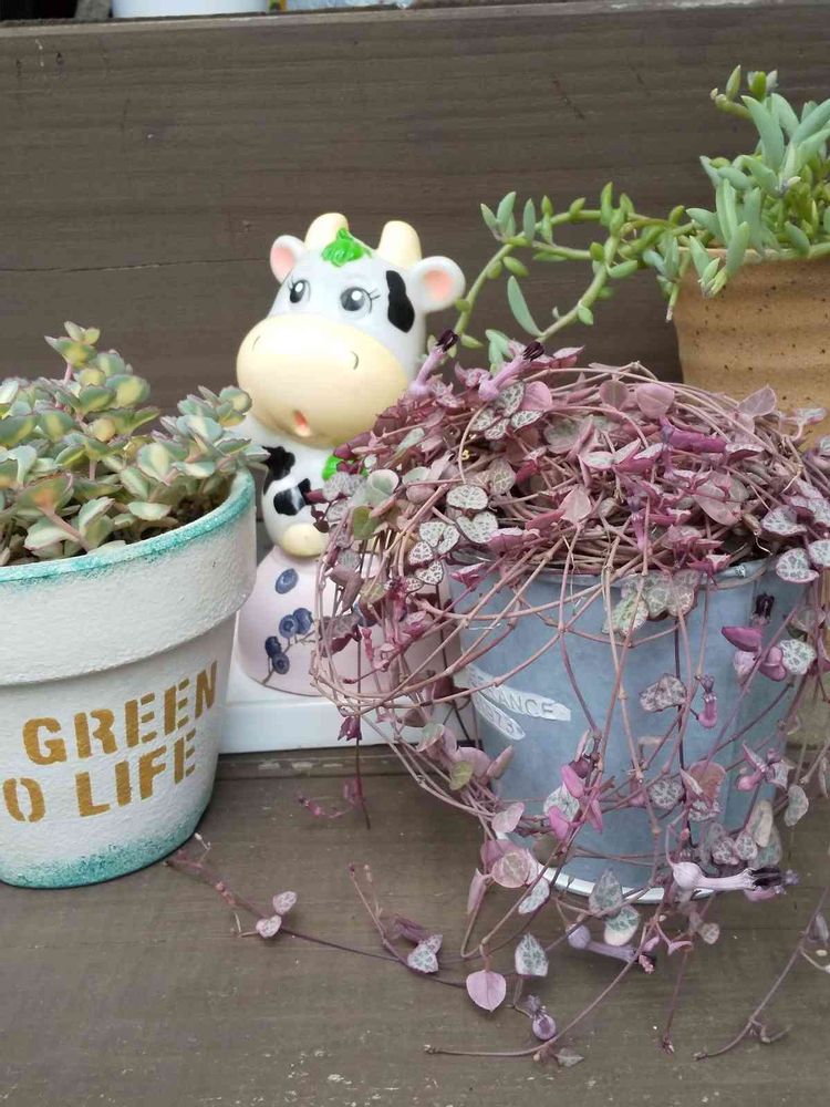斑入りミセバヤさん 昨年から、あまり成長してないみたい(U •̥ ̫ •̥ U) 牛🐮さん 真ん中でいい顔してね❣️