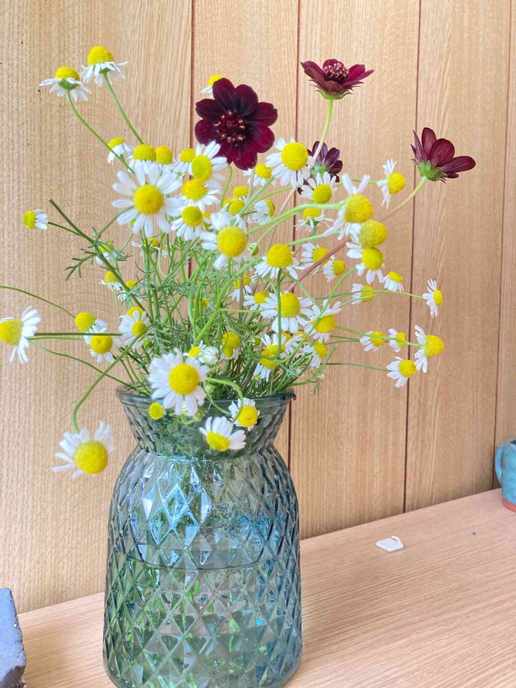 週末雨とのことで、伸び伸びのカモミールをスッキリカットしました😳✨