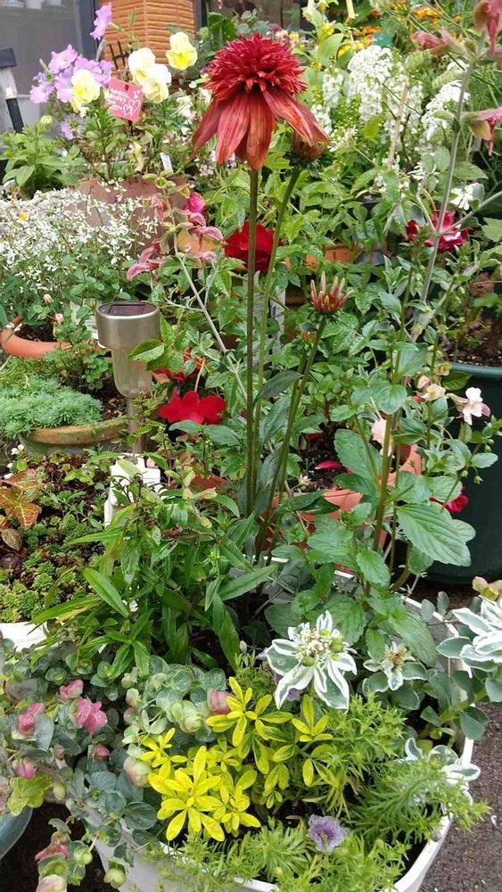 一目惚れの真っ赤なセキナセアとの寄植えしてみましました🤭