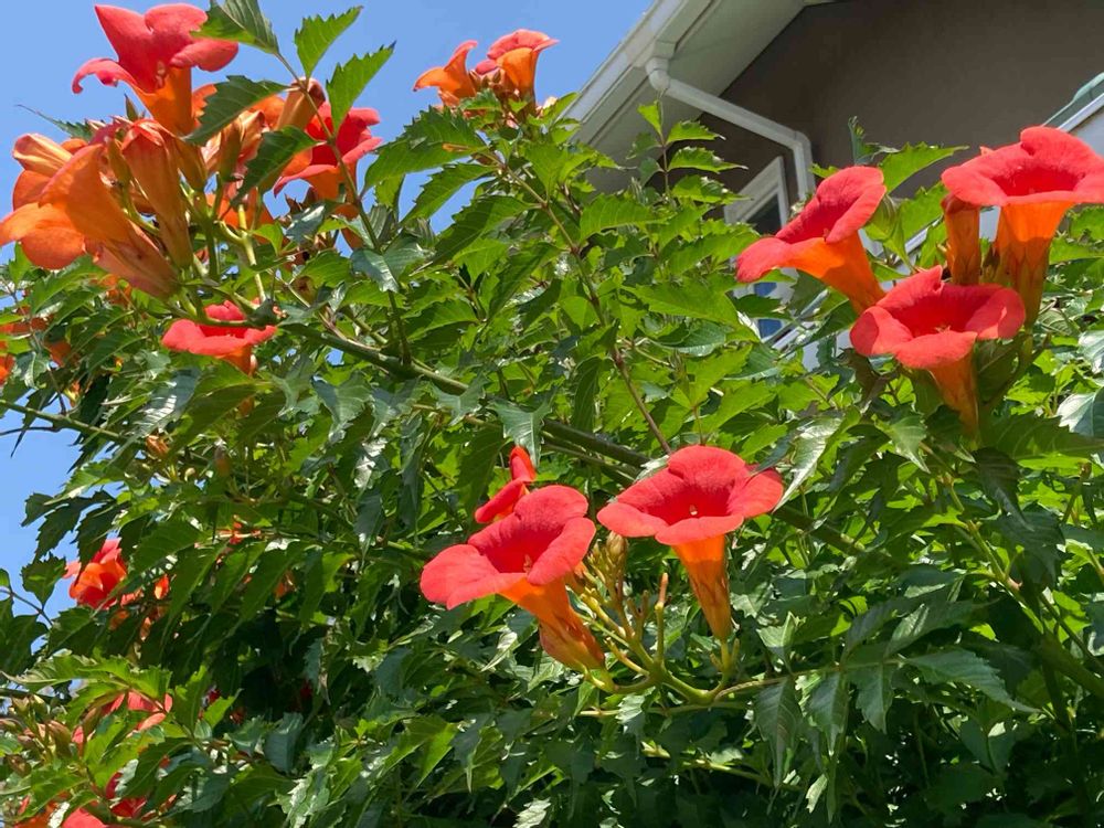 仕事の帰り道にある邸宅の傍らにノウゼンカズラの花が鮮やかに咲いていました。