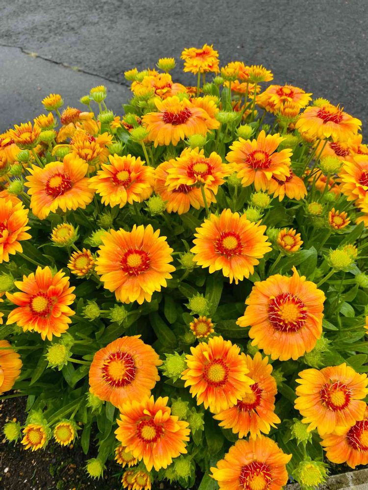 病院行く前に雨の中花壇でまるまるに咲いてるのを見て癒されました〜