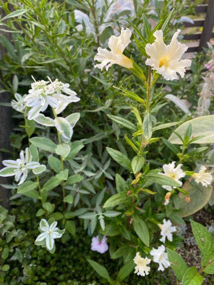 ミムラスオーランティアクスホワイトは、真っ白だったけど、今年はほんのりイエローです。